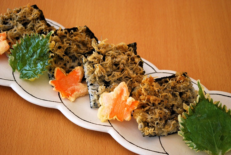 今月限定の別注料理のもう一品は、淡路産しらすと海苔のパリパリせんべいです。