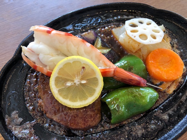 ジュージュー言いながら運ばれる鉄板の上で、ステーキソースとバターの香りが立ち込めて食欲をそそるんです。