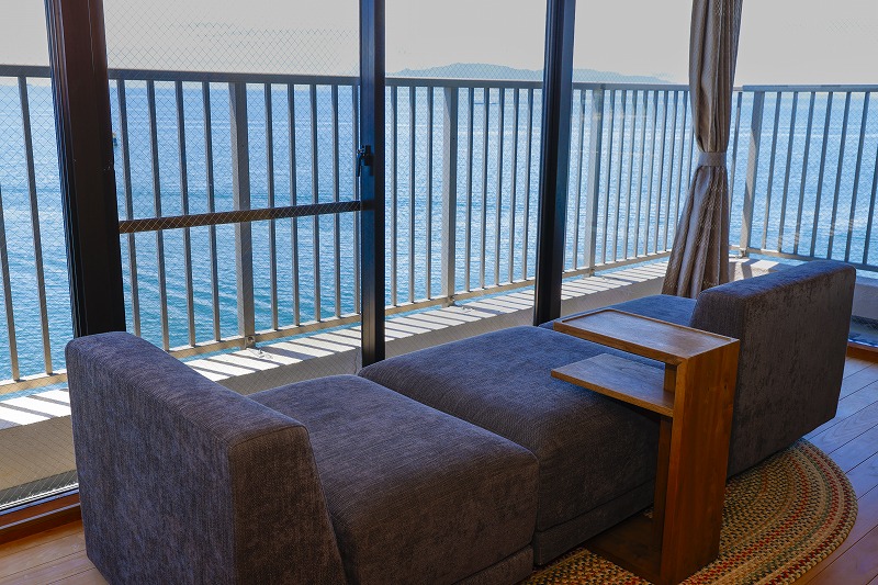 ちょっと長めのソファで、海景と夕景を楽しんで下さい。