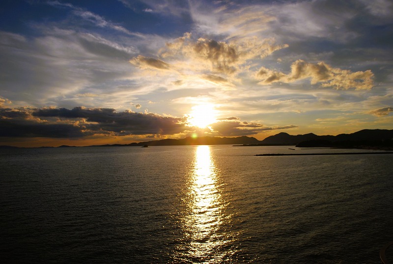 雨のお天気から始まった今日の赤穂御崎。 お昼以降は綺麗に晴れて、気温がぐんぐん上がって汗ばむほどの陽気になりました。 そして、夕刻の夕陽は光り輝く金色の夕陽です。 雲に隠れる寸前を撮影しました。 秋の夕陽は一瞬のつるべ落としです。見逃す事なくご鑑賞下さいね。
