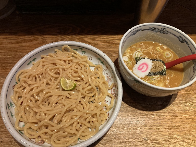 付けだれは、煮干しや魚粉の香りがして太麺と合っていて美味しいですね。