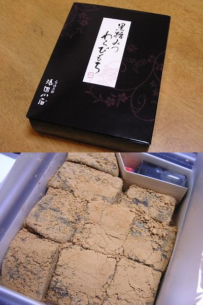 黒糖の香りがするわらび餅にきな粉、そして黒蜜を掛けると味の塩梅が結構深い。