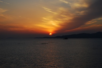 今日も一日良いお天気。 気温も秋らしく、気持ちの良い一日でした。 週末を迎えた祥吉も今日はたくさんの皆様にご来館頂いております。 行楽の秋ですね。 只今祥吉では、秋の食材を取り揃えて祥吉らしい一夜をお過ごし頂ける工夫を日々重ねています。 そして、こんなお天気の夕陽も綺麗でした。 沈み際に雲に隠れながら沈んでいきました。 そうなるとこんな夕陽になるんです。 これも綺麗ですね。