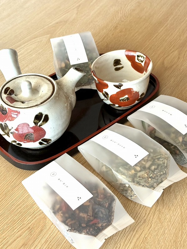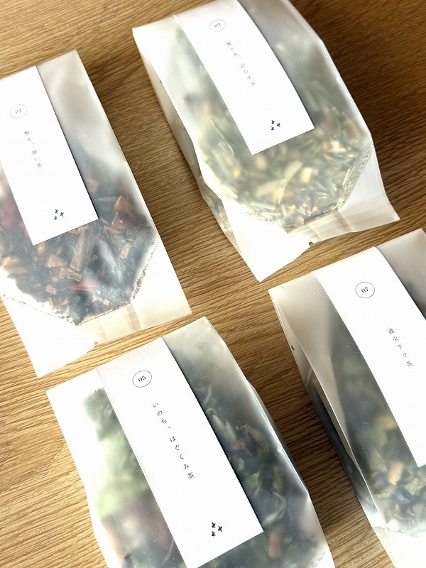 自家菜園で育った無農薬の野草や薬草を積極的に使いながら作られたお茶は、香り豊かで今までのそれとは一線を画すもの。ハーブティーは少し苦手、漢方のような苦みが少し苦手という方にも、お茶ベースなので飲みやすく。何とも言えない余韻が楽しめます。