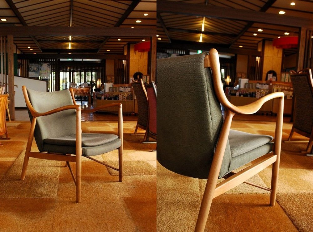 この椅子は、私が個人的に憧れる旅館のロビーに置いてあったもの。祥吉にも置いてみたく椅子コレクションの一つにしています。和の空間に置き易く、そして椅子としての機能をしっかりと果たす為にデザインされた椅子。空間の邪魔にならいデザインは流石の一言。北欧のデザインの香りがする気持ちの良い椅子です。 |