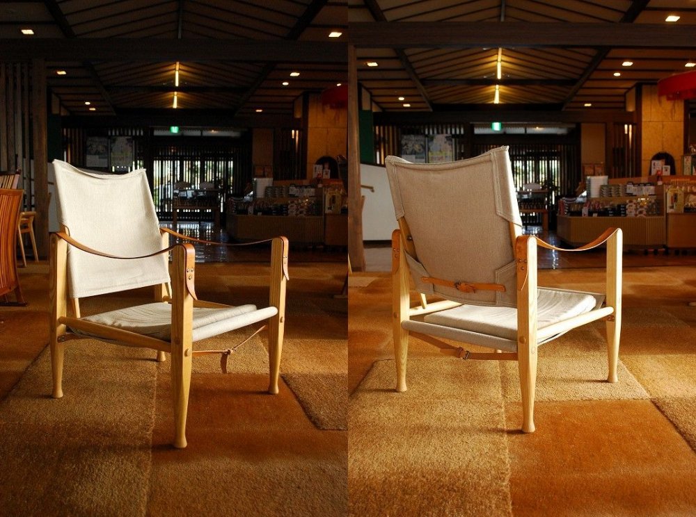 英国軍が使用していた組み立て椅子が起源の椅子で、おそらく最古の組み立て式の椅子がこのサファリチェア。接着剤を一切使わずに組み立てる事が出来て、座る事によってそのすべてが引き締まって安定する構造は正に秀逸の一言。軽くて、デザイン的にも優れていて、長く愛される理由が一杯ある椅子です。座ってみてその構造を確かめて下さいね。 |